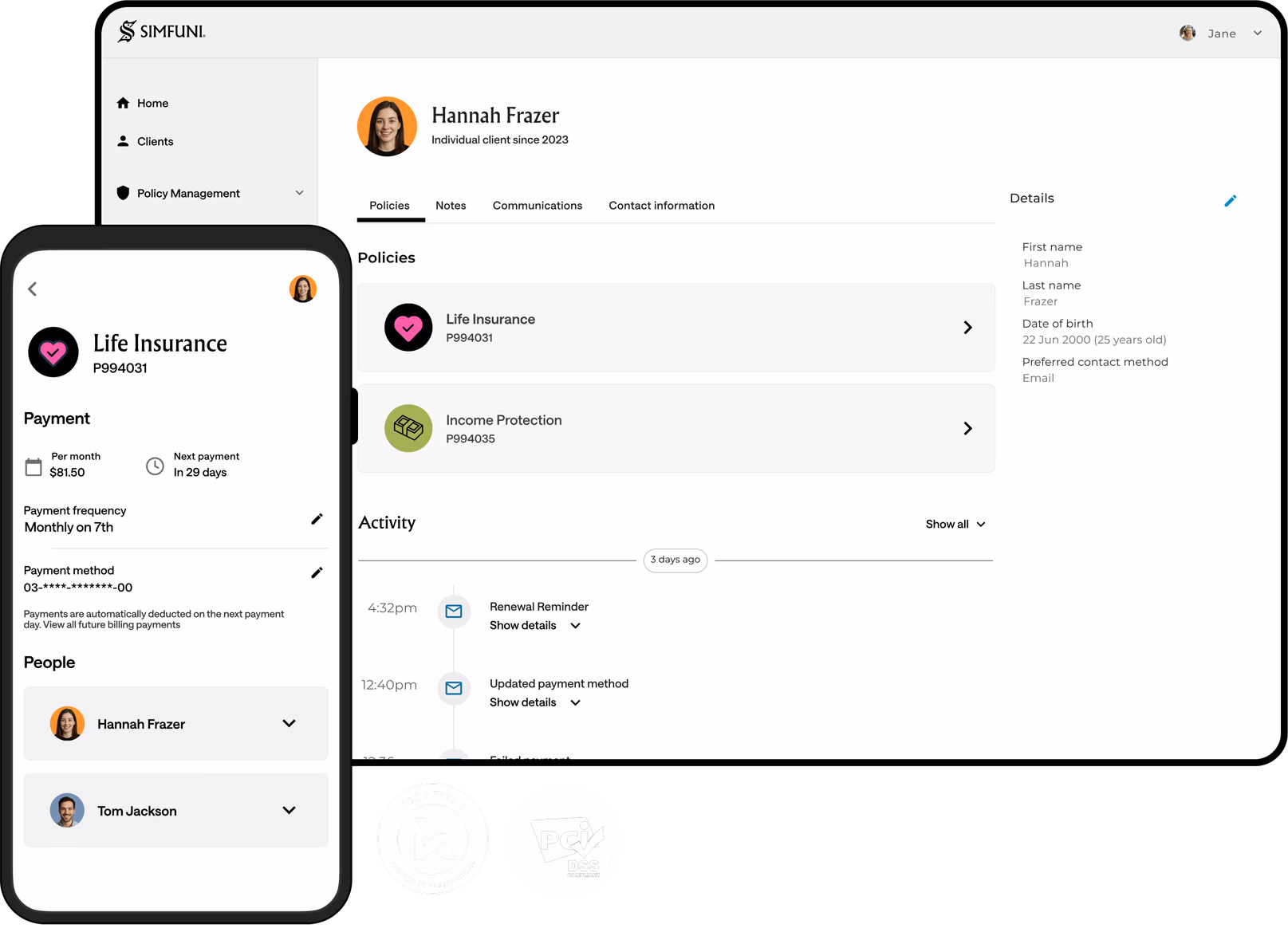 Make every interaction effortless. From payments to policy updates, Simfuni’s digital and self-service tools give policyholders confidence, control, and connection to their insurer.